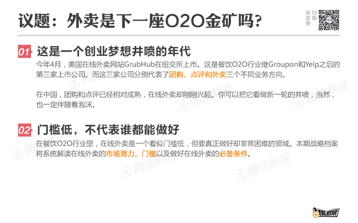 餐饮业O2O,看上去很美,做起来太难。这是一个梦想井喷的年代,但门槛低,不代表谁都能做好。 传统外卖营销覆盖有限,效果难跟踪;更新菜品需要重新印刷,订餐高峰期电话容易占线,缺乏后续用户用餐反馈。 在线外卖网站展示,点击率能统计;网页随时更新,不存在信息过时,网络下单并发支持好;积累用户信息,互动,推荐新菜。